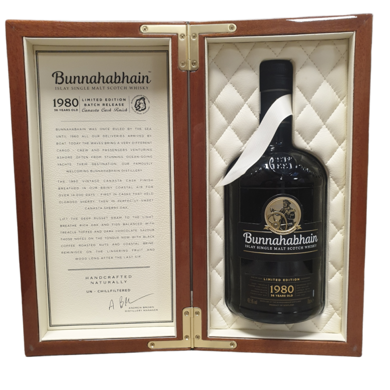 Bunnahabhain is een van de oudste distilleerderijen op Islay. De distilleerderij staat bekend om zijn lichte en ongefilterde whisky's, maar deze 1980 vintage is een uitzonderlijk voorbeeld van de mogelijkheden van deze distilleerderij.